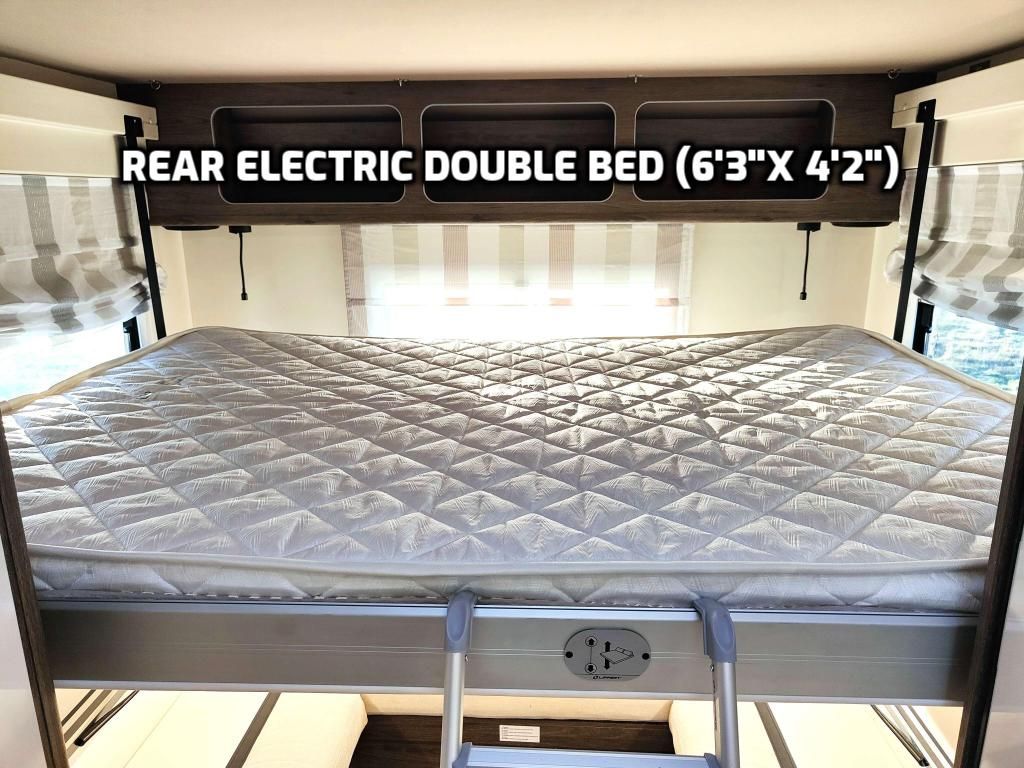 - two electrically descending double beds, both 1.9m x 1.28m (6'3" x 4'2")