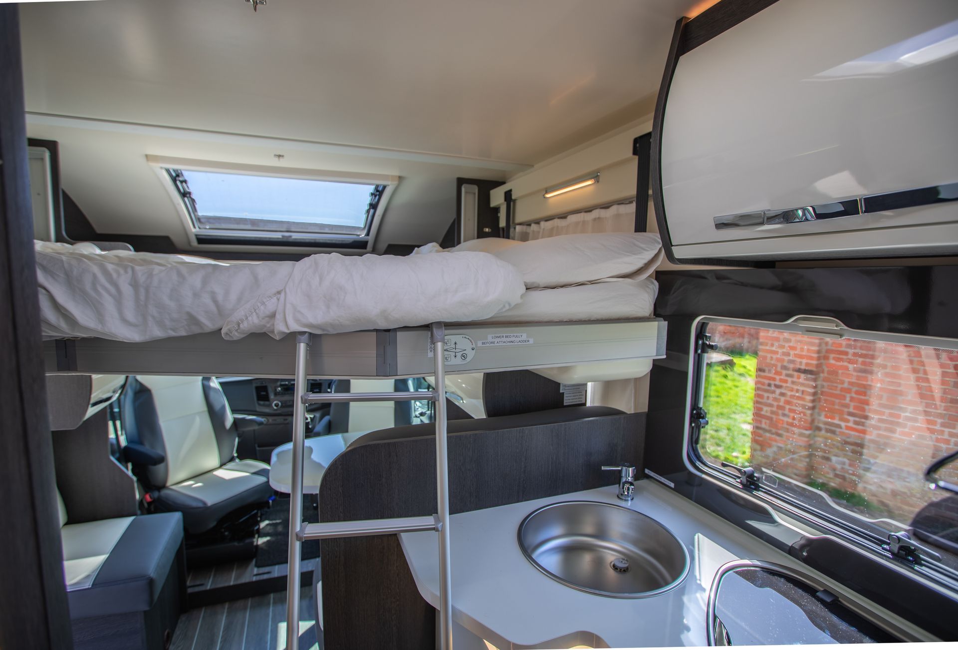 The garage is very large, some 1.3 metres high, meaning you can fit bikes inside. On Rooster1 with the bed in the lower position, the garage height is 0.9m and in the middle position it's 1.1m. Rooster2's garage is fixed at 1.3m high. If you're taking bikes and need the garage space, you can also hire a bike rack at a small additional charge.
