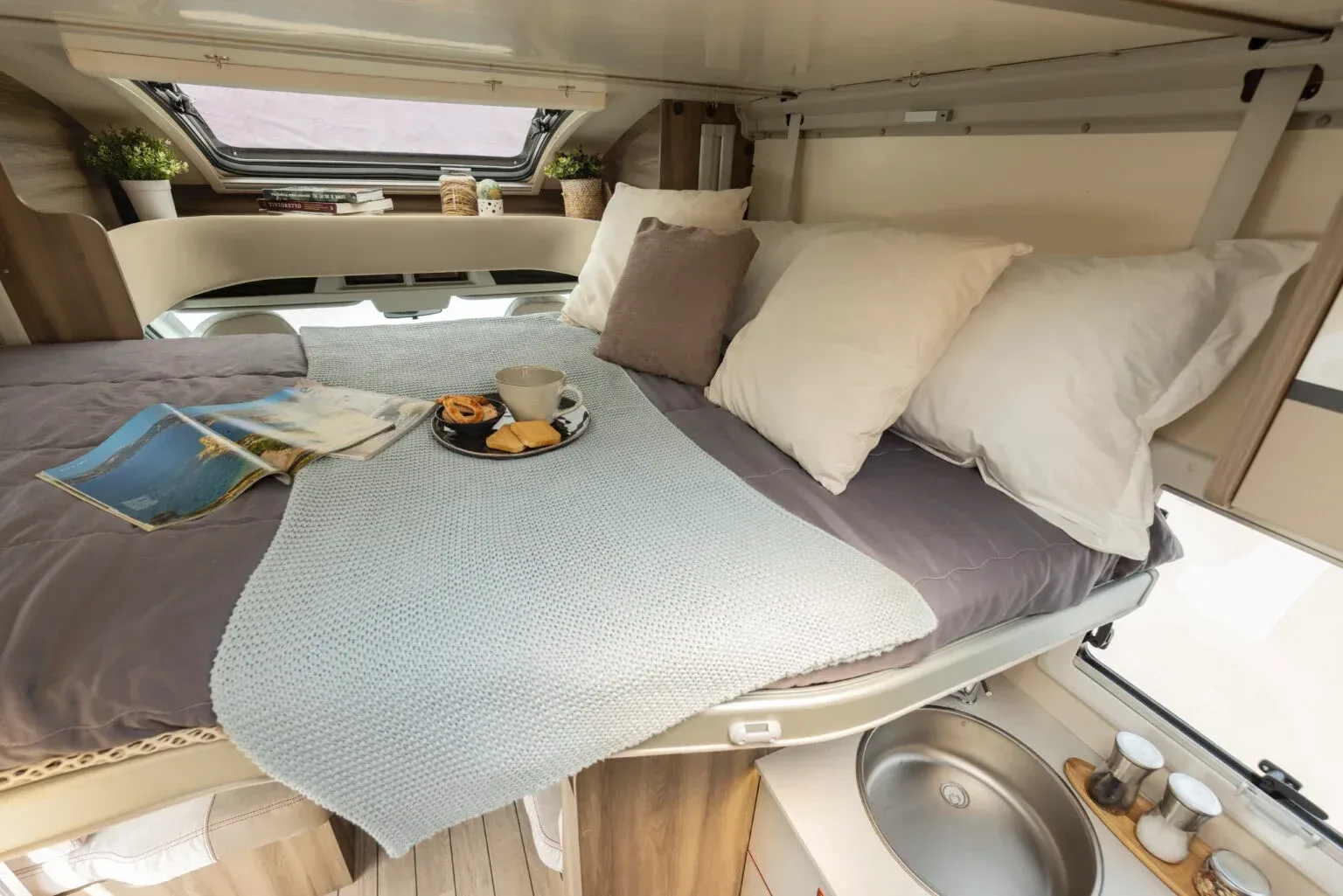 - electric drop-down double bed (size 1.9m x 1.16m / 6'2" x 3'10" narrowing at feet end by 21cm / 9")