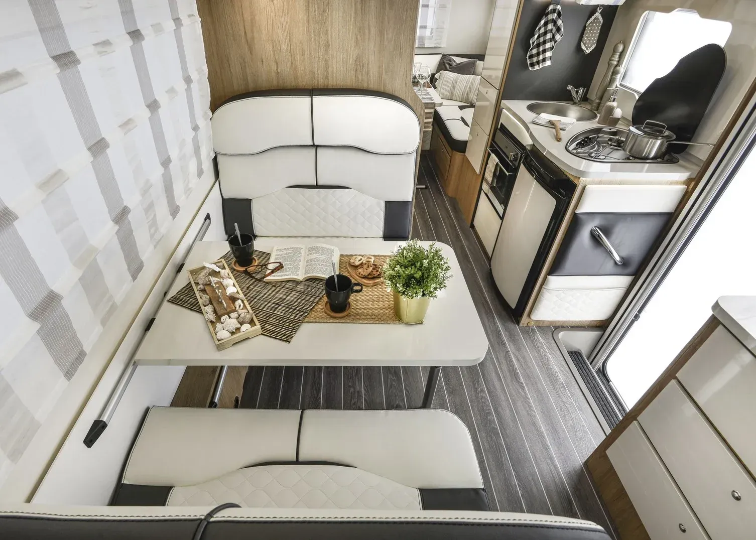 - short double bed made up from the dinette sofas and table, 1.66m x 1.26m (5'5 x 4'1)