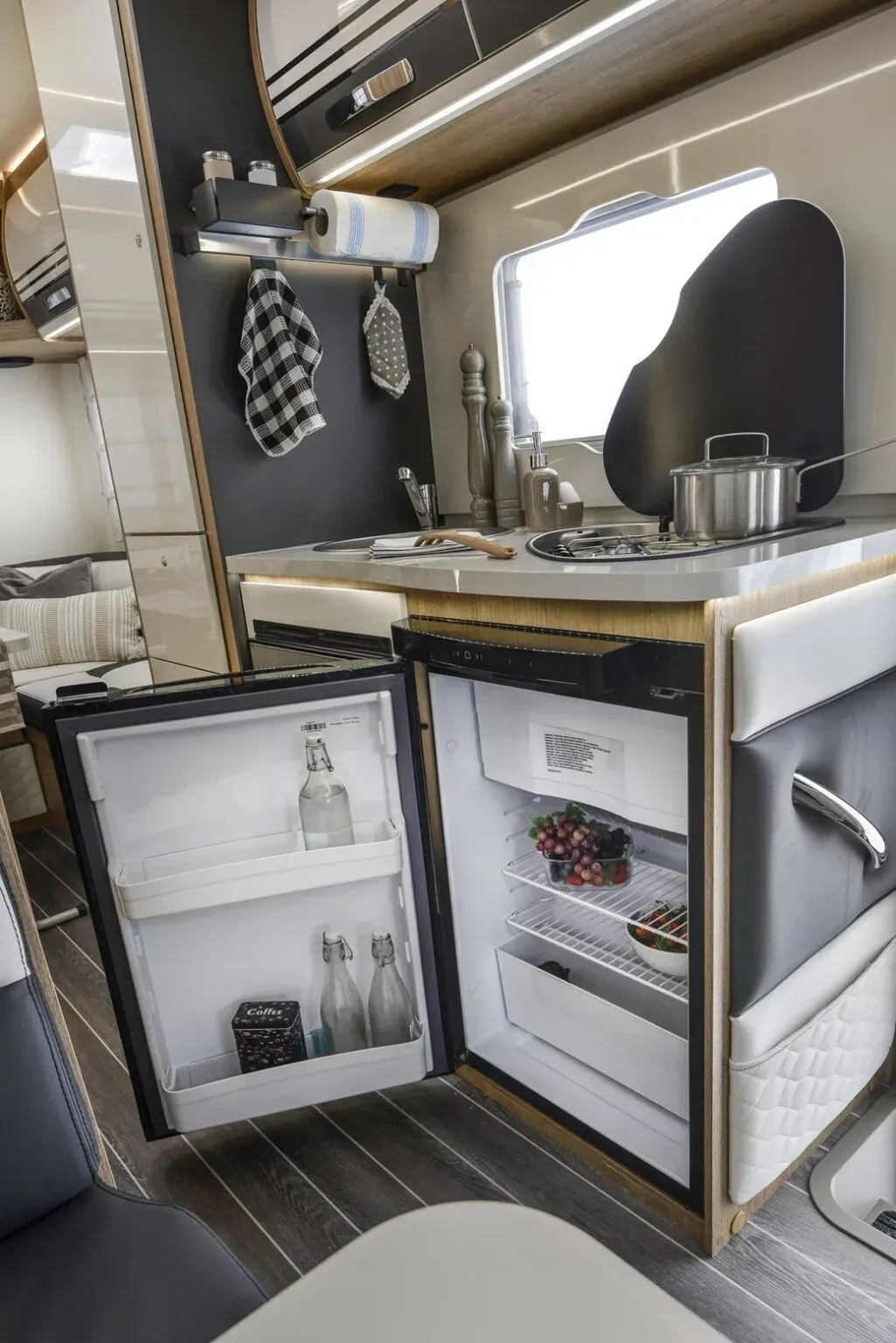 - 3-way 141 litre fridge (gas, vehicle battery or electric hook-up when on camp sites)